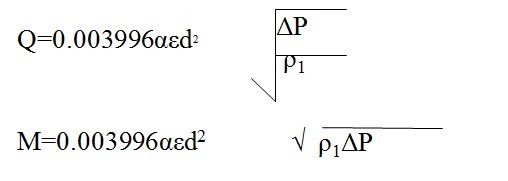 在計算時,如果把Ao用π/4d2 表示,d為工作溫度下孔板孔口直徑,單位為mm,而ΔP以Mpa為單位,則上述基本流量方程式可換算為實用流量計算公式,即:
