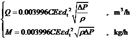 (1)流量Q以m3/h 表示,在流體工作溫度下節(jié)流件開孔直徑dt以mm表示,壓差P以Pa表示, 電磁流量計(jì) 流體工作密度仍以kg/m3表示時(shí)的流量方程為: (2) 壓差P以kPa表示,其它單位不變,則上式改寫為: (3)如果P以mmH2O (水柱)表示,水的密度(20℃)998.2 kg/m3 ,其