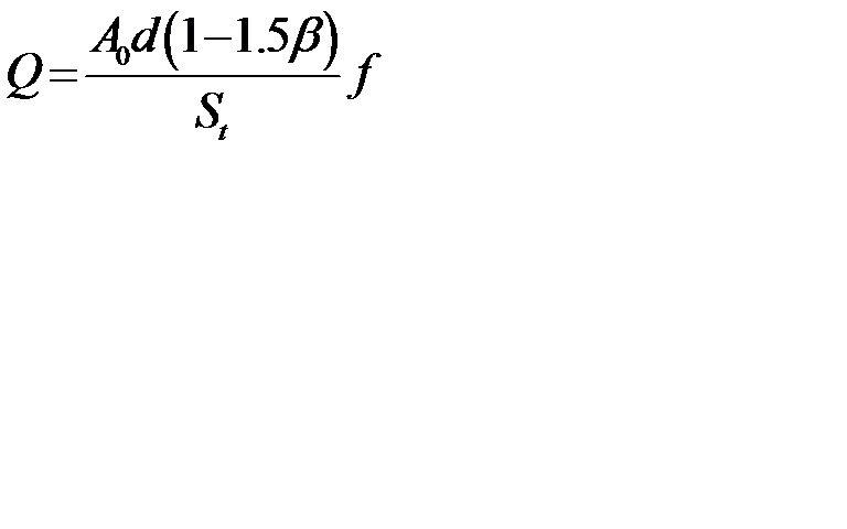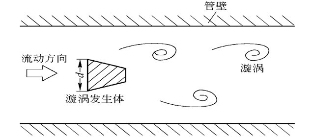 如采用三角柱體作為旋渦發(fā)生體,其迎流面的邊長或?qū)挾葹閐,流體的體積流量Q為: