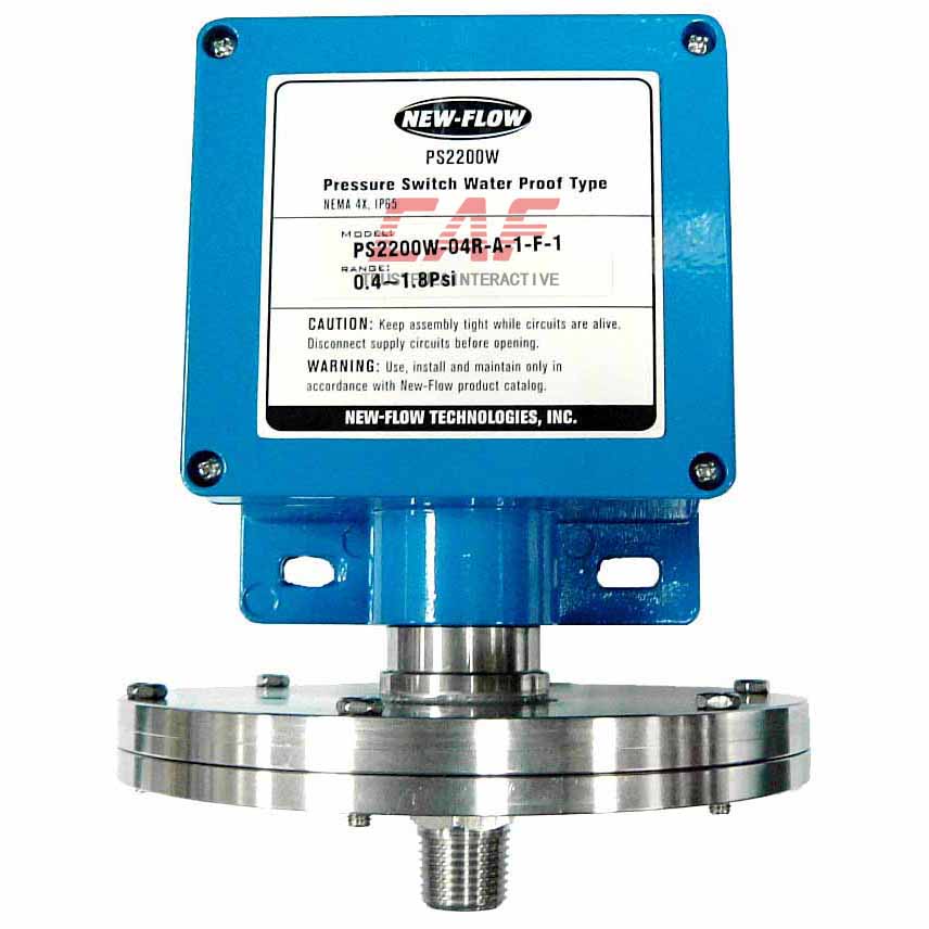 NEW-FLOW 的PS2200W 型防水壓力開關設計用于控制系統中,PS2200W 具有設定點重復性高,死區窄的特點,根據要求有各種量程范圍可選,設定點很容易調整,不需要特殊工具.